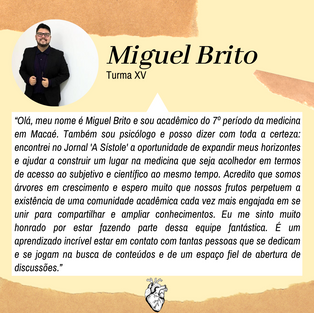 O Jornal “A Sístole” é composto por estudantes do curso de Medicina da UFRJ Macaé. Por meio das mídias sociais, temos abordado temas relevantes em saúde com uma linguagem acessível, com o objetivo de alcançar o grande público, assim como estender o conhecimento médico para temas "além-currículo". Além disso, por meio do Jornal é feito um registro histórico do nosso curso e seus acontecimentos, para divulgá-los dentro e fora da comunidade acadêmica. ⠀⠀⠀⠀⠀⠀⠀ Todas essas produções só são possíveis graças ao empenho da nossa equipe e, por isso, hoje vamos apresentar alguns dos nossos integrantes.